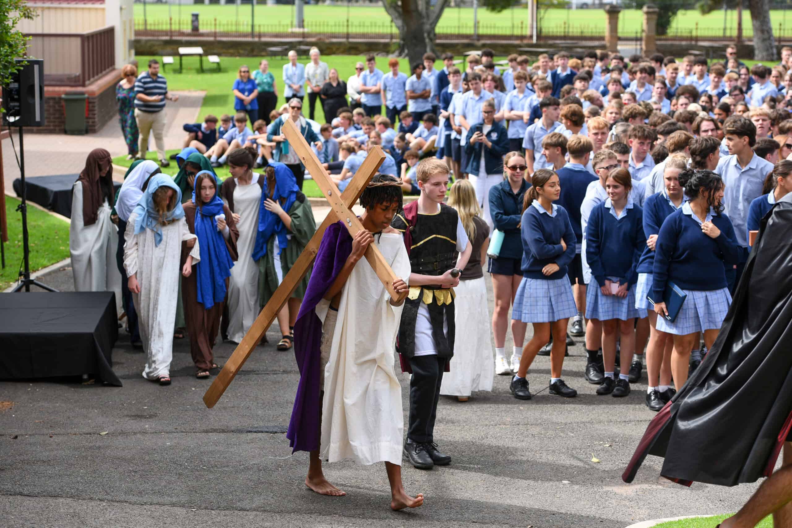 Stations of the Cross returned to Marcellin Campus on Holy Thursday (2 April), offering a moving and deeply spiritual reenactment of the Passion and death of Jesus. Marcellin students reverently brought to life Jesus’ 14-step journey in a solemn performance for staff and peers, inviting all present to pause in quiet reflection on His sacrifice and the true meaning of Lent and Easter.