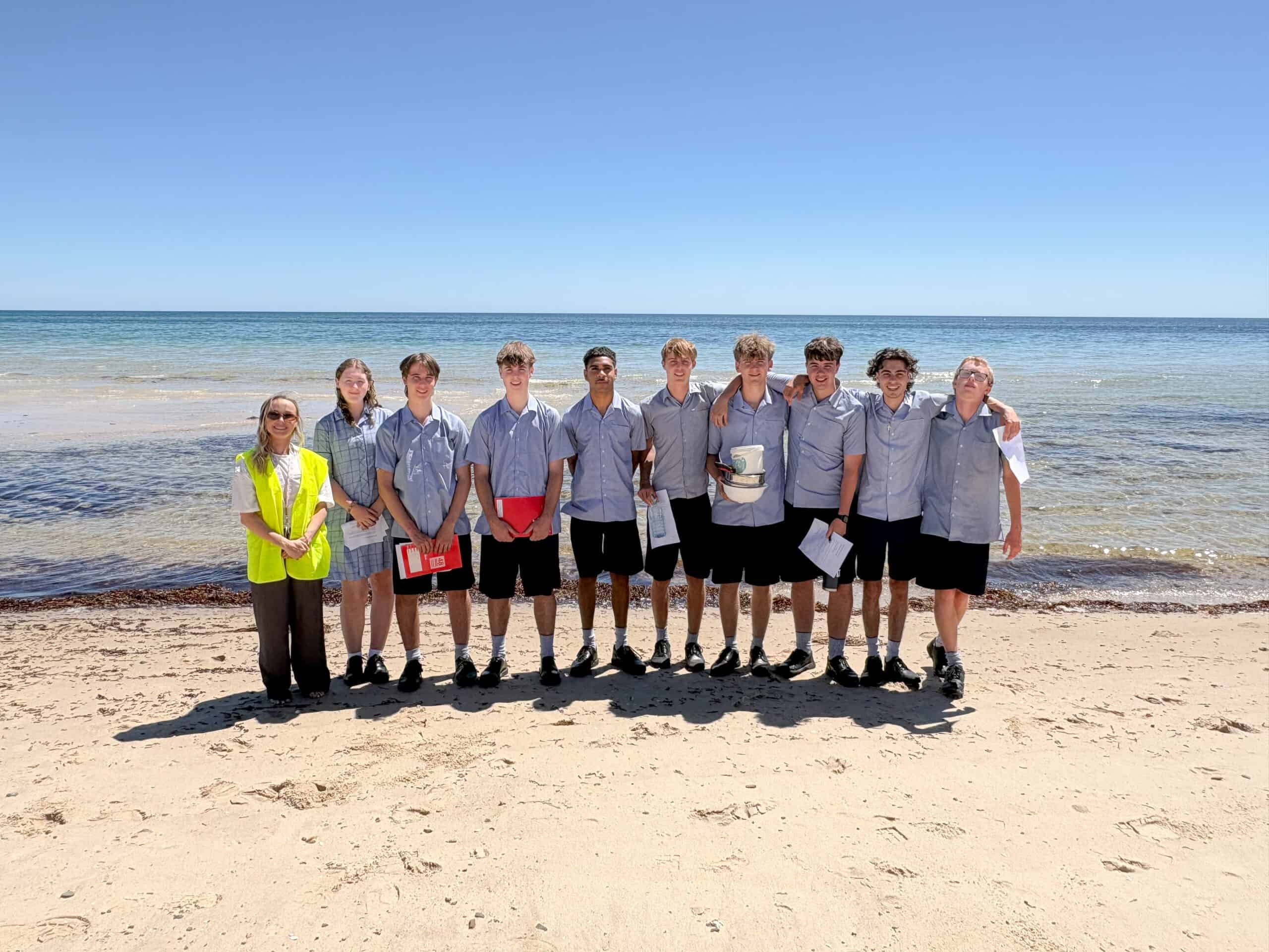 On Tuesday, the Stage 2 Earth and Environmental Science class travelled to our local beach at Somerton Park. This was our students’ first time completing a field investigation, something that becomes important in the world of Geology and Environmental Science beyond school. Students recorded their observations and analysed the interactions between Earth’s Spheres (Hydrosphere, Geosphere, Atmosphere and Biosphere) whilst enjoying the sunshine. A great day for it!