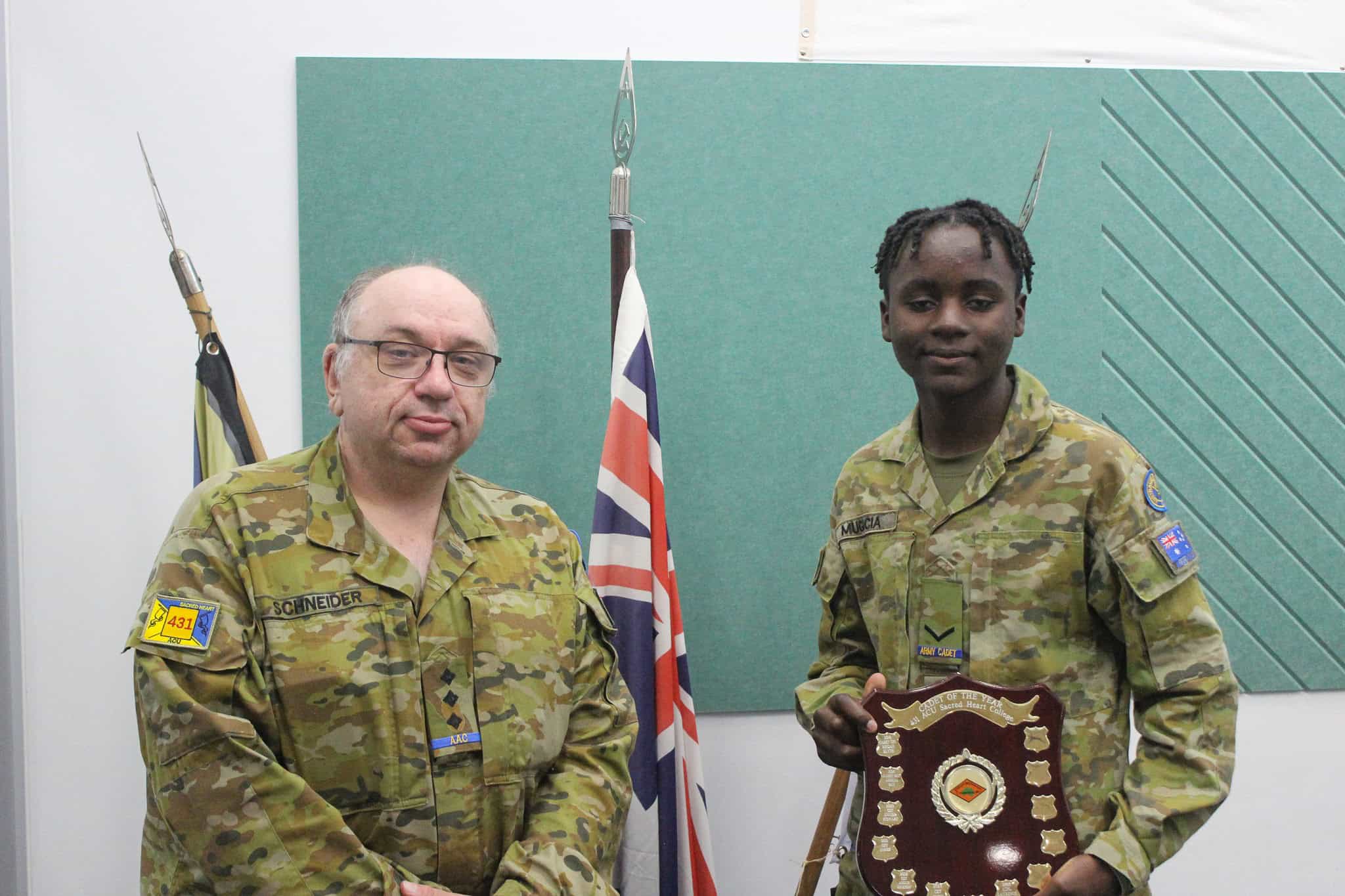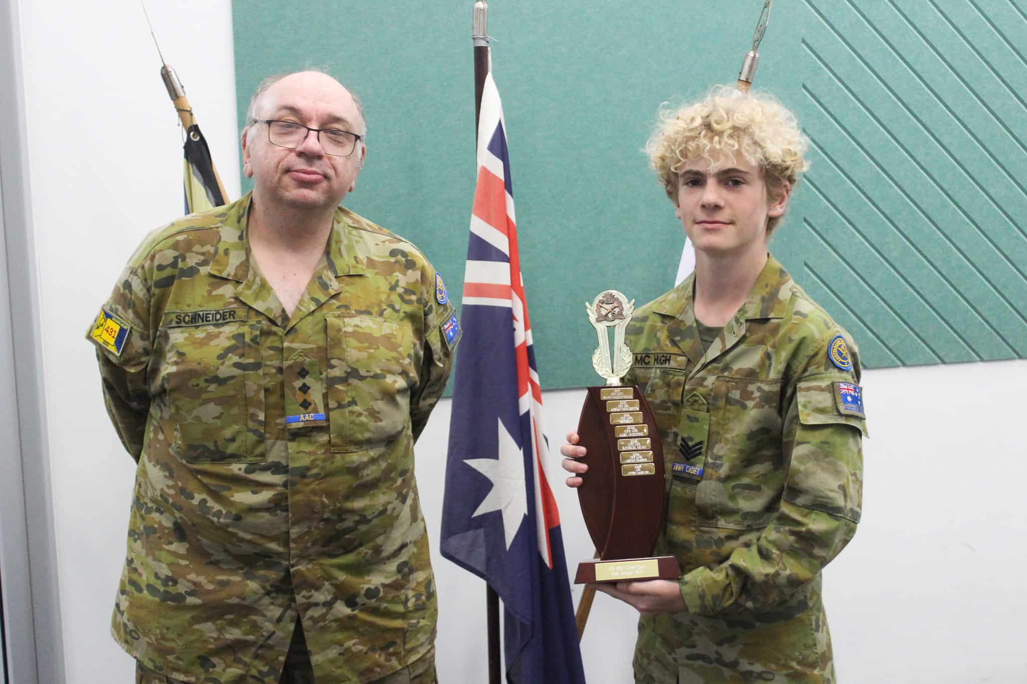 In addition to our cadets’ achievements, we also recognise the dedication of Captain (AAC) David Schneider, who was presented with an Australian Army Cadet Shield in recognition of five years of service, as well as a Boothby Volunteer Service Award for his contribution to the Australian Army Cadets. In addition, we congratulate Lieutenant (AAC) Alan Cheng, who was accepted into Royal Australian Navy service as a Reservist.