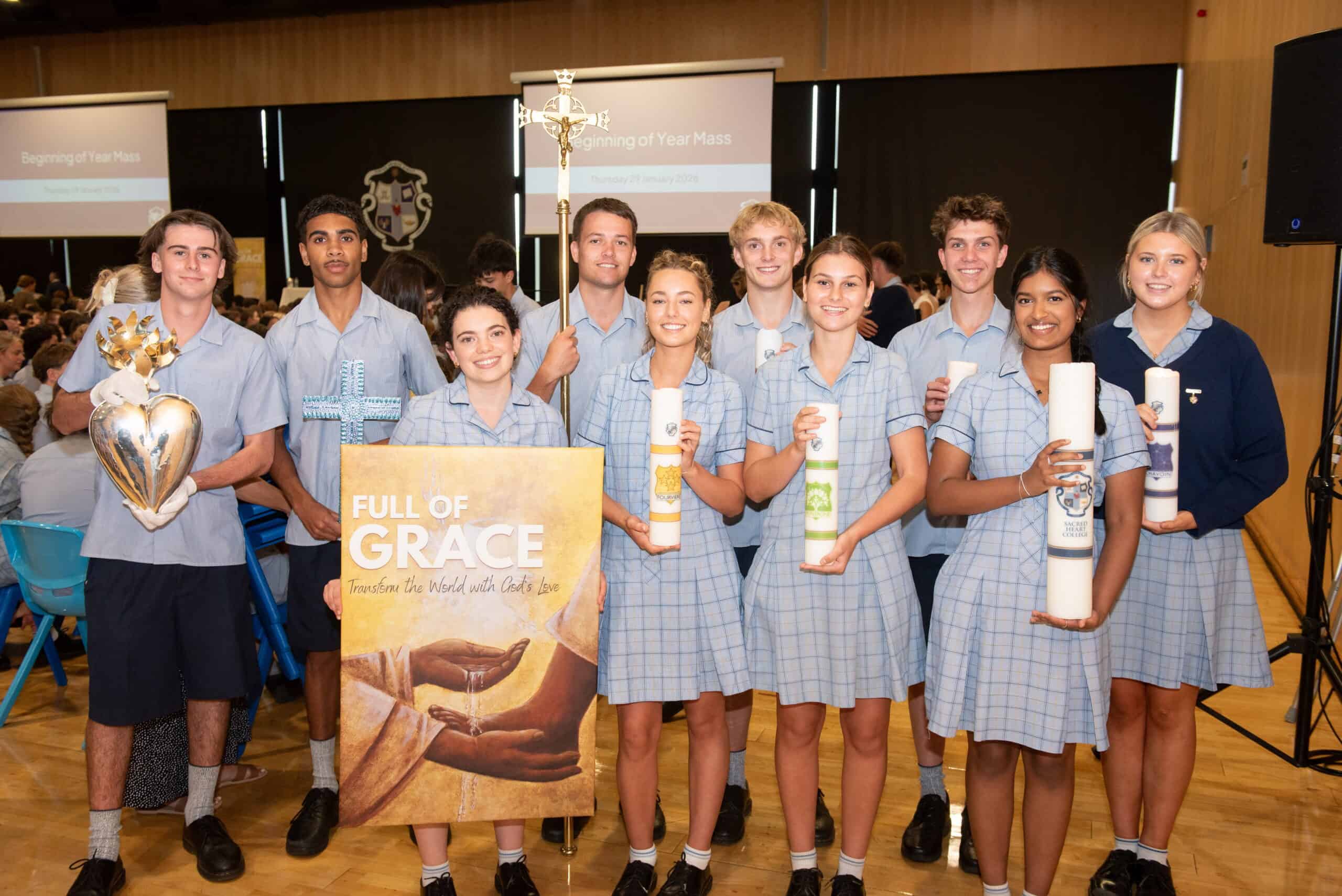 Students and staff at Marcellin Campus gathered as a whole community last Thursday to celebrate the beginning of the new school year with an Opening Mass. This also provided an opportunity to launch the 2026 Marist theme, ‘Full of Grace – Transform the World with God’s Love.’